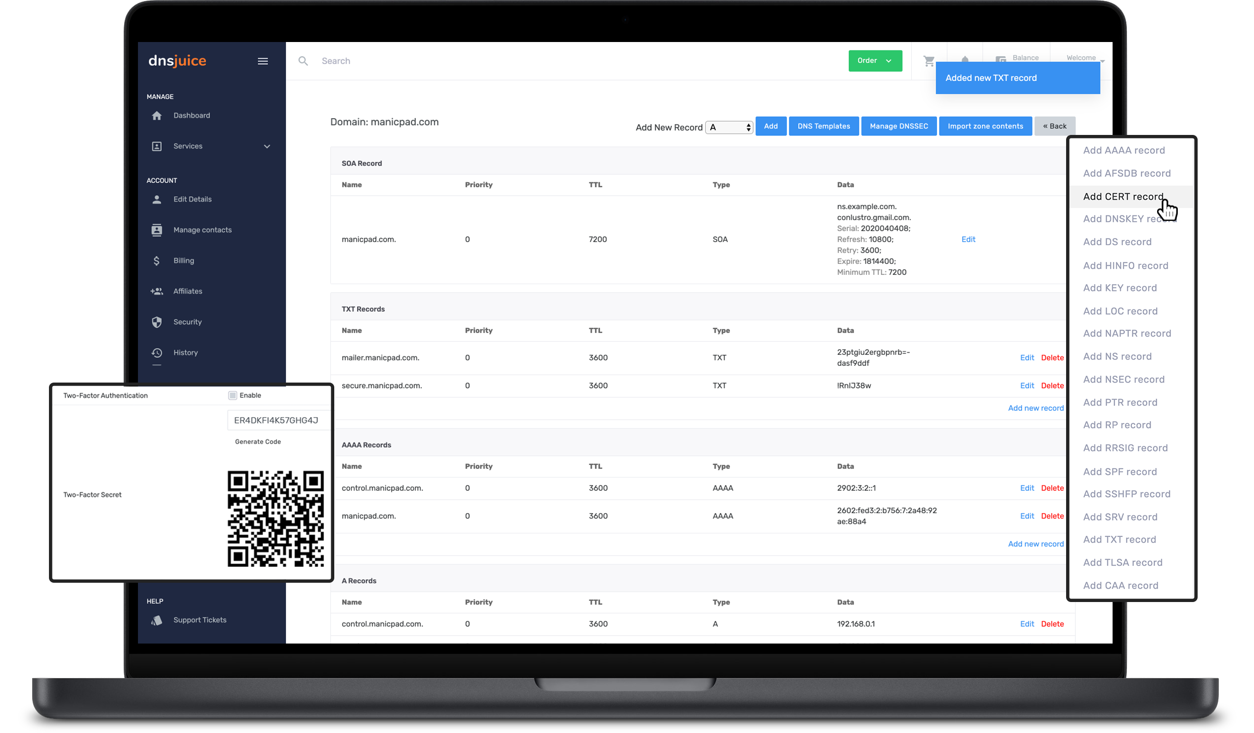 Save time with our easy to add record features and services. You can't do it quicker with any other panel.